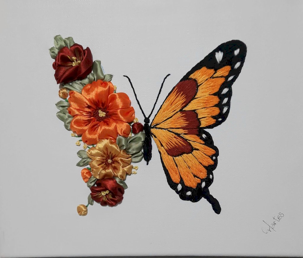 With a lifelong passion for the appreciation of handmade crafts, Martes has honed her skill in transforming a piece of canvas or textile into a beautiful work of art using various techniques with ribbon, floss, and beads. Her work appeals to all generations and is sought after as gifts, whether personal or for specific occasions. The emphasis is on handmade quality, which, though time-consuming, creates a connection between the artisan and the work, especially when it is a bespoke piece with design, colours, and textures chosen by the client.