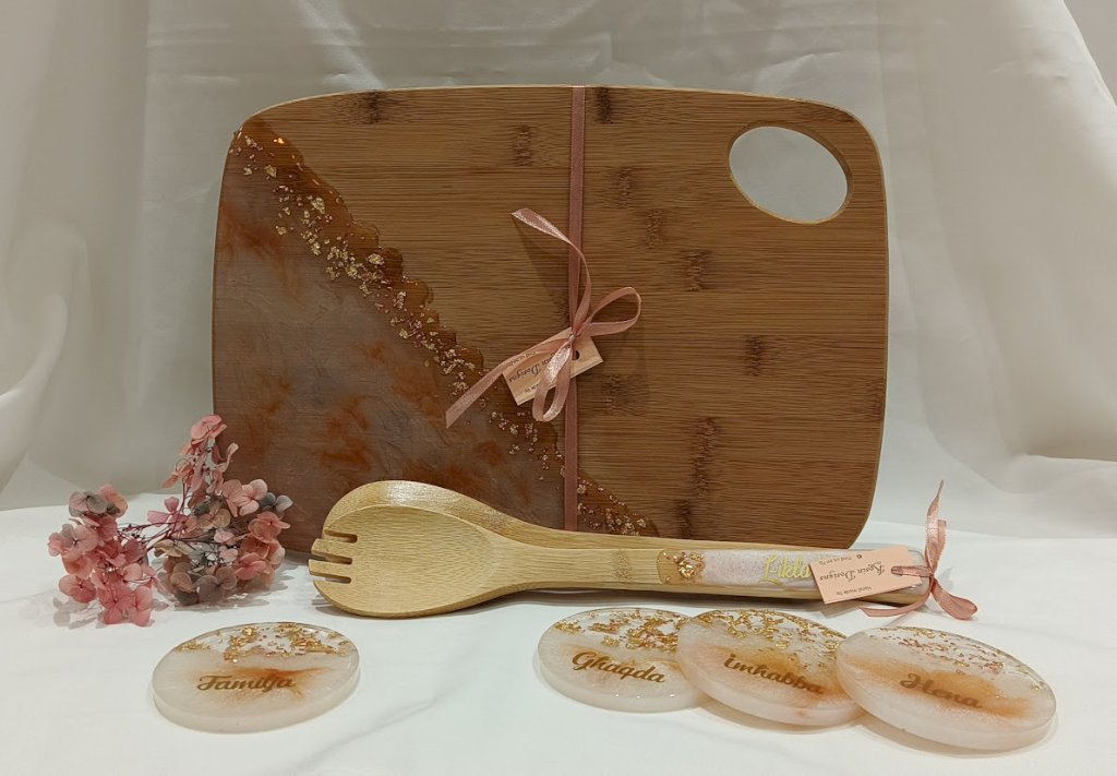 I am Felicia Borg and since I was a kid I always loved crafts and hand made items. About 4 years ago I started experimenting with resin, by time and practise I started improving my techniques, my work, the neatness and more. Relatives and close friends starting showing interest in what I was creating and asked me to start making them as gifts for them to give out. From that moment on I have applied for the Vat number and started on this new tiny adventure, where I had more opportunities to create, experiment and learn. I have created a Face book page where the people showed that they were interested in my products, sales increased, new clients and friends where made. My products are mostly chopping boards where I cover part of them with resin creating unique designs and/or colour flows that can be customised to match any kitchen or working area.